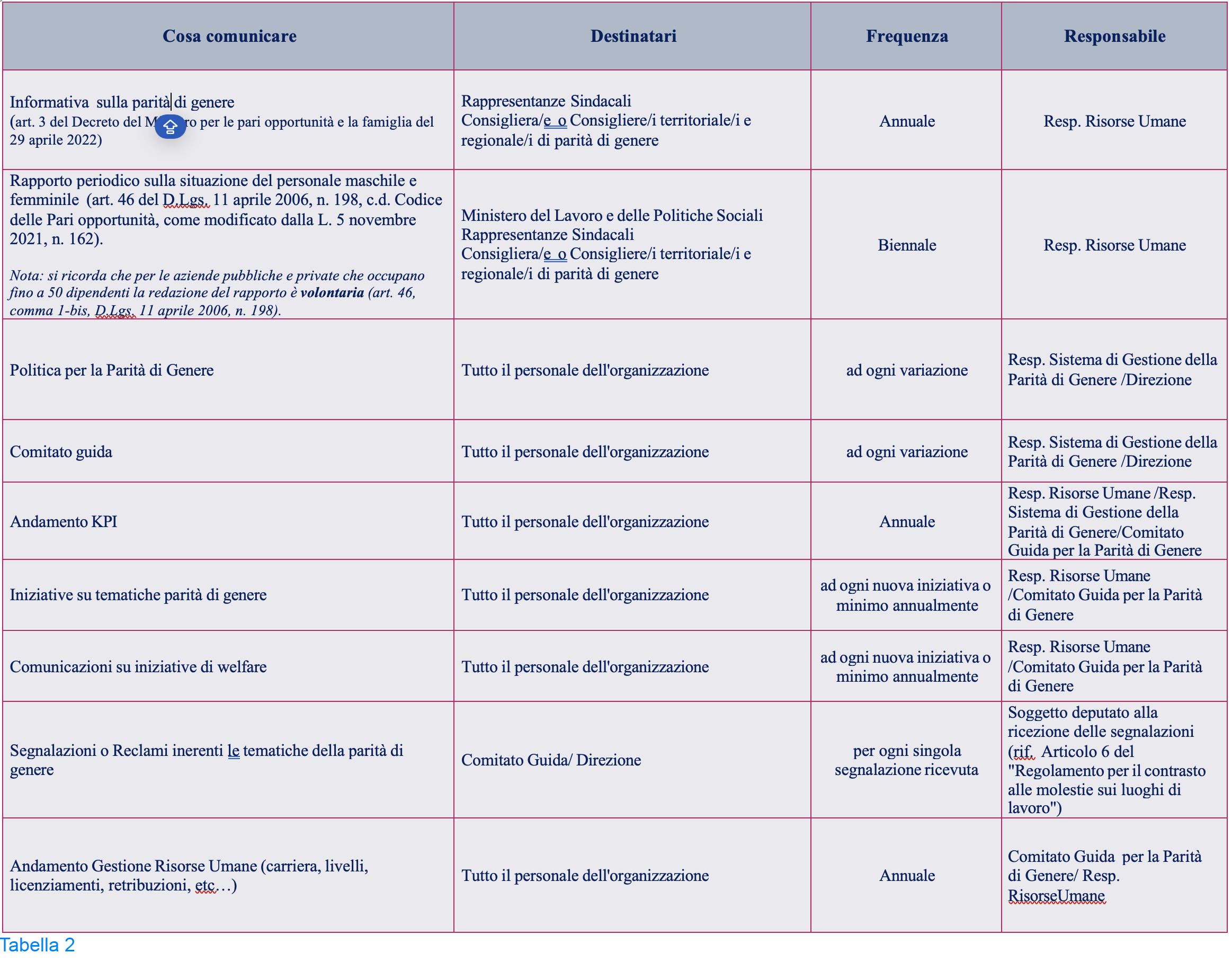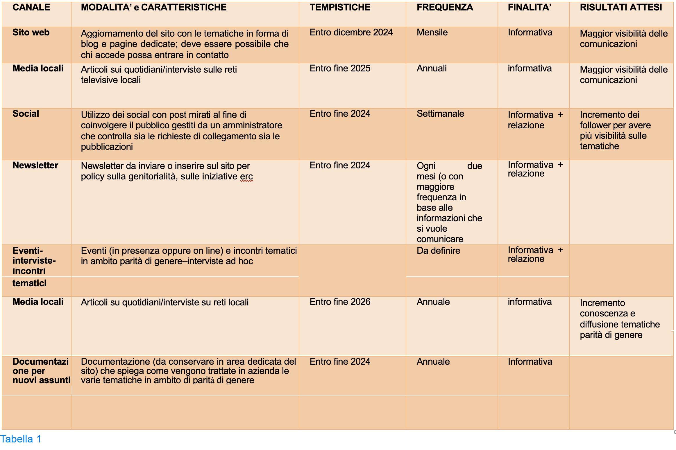 Con riferimento alla strategia di comunicazione si agirà su diversi elementi, sia incrementandone alcuni sia creandone altri ex-novo, al fine di coinvolgere il personale per far conoscere le politiche in ambito di parità di genere ed inclusione.